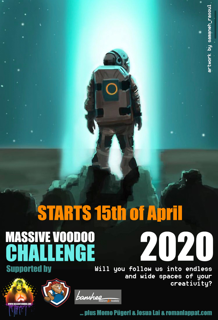 Спонтанно проводимый конкурс миниатюр сообщества Massive Voodoo в карантинном 2020-м порадовал новой темой и специальной миниатюрой. В этот раз художник Роман Лаппат (Roman Lappat) и скульптор Момо Пугерл (Momo Pugerl) создали фигуру маленького астронавта. Участникам конкурса предлагается с его помощью исследовать пределы своего воображения.