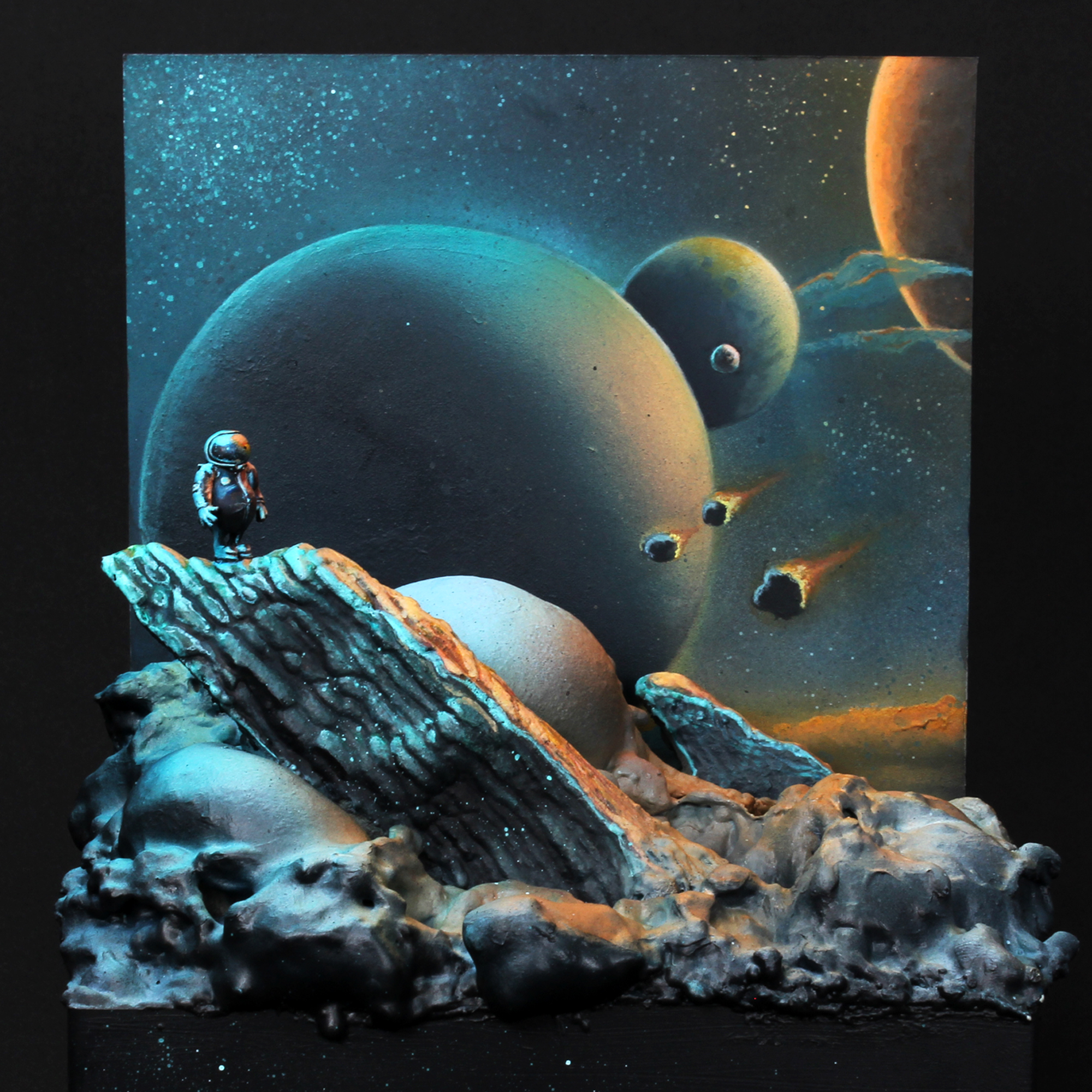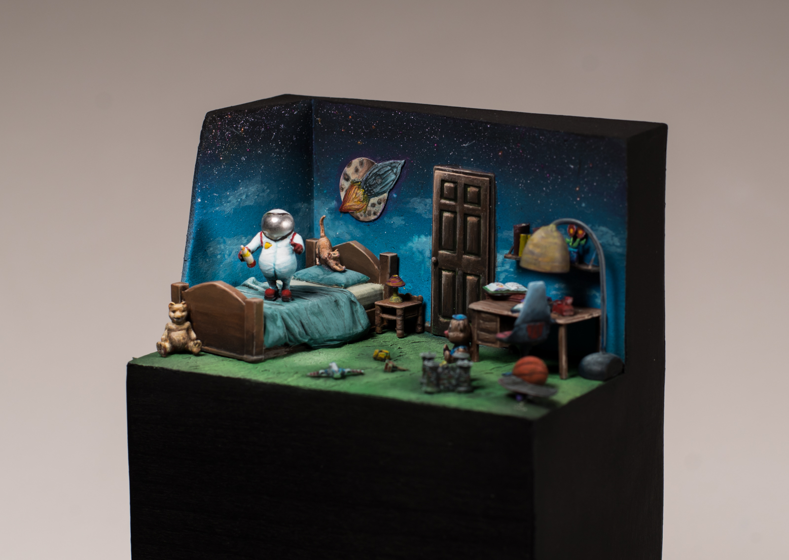 ‘Negative World’, как и несколько других работ конкурсантов, строится на принципе зеркального контраста и поначалу не производит особенного впечатления. Но для людей с тренированным цветоощущением замысел автора проявляется во всей красе: половинки диорамы симметрично расписаны взаимно дополнительными цветами, так что в негативном изображении они полностью меняются местами: